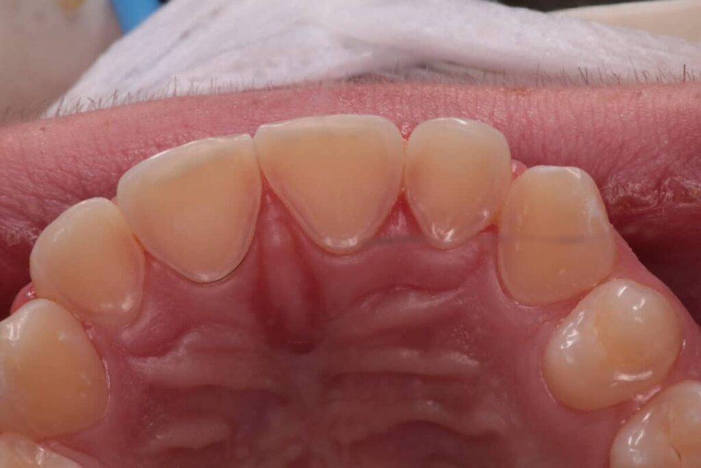 - Rounded or smooth edges on teeth, often most visible on front teeth.